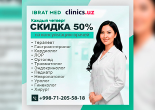 СКИДКА 50% на консультации врачей — каждый четверг в клинике Ibrat Med