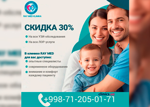 СКИДКА 30% на УЗИ и ЛОР в RAY MED KLINIKA!
