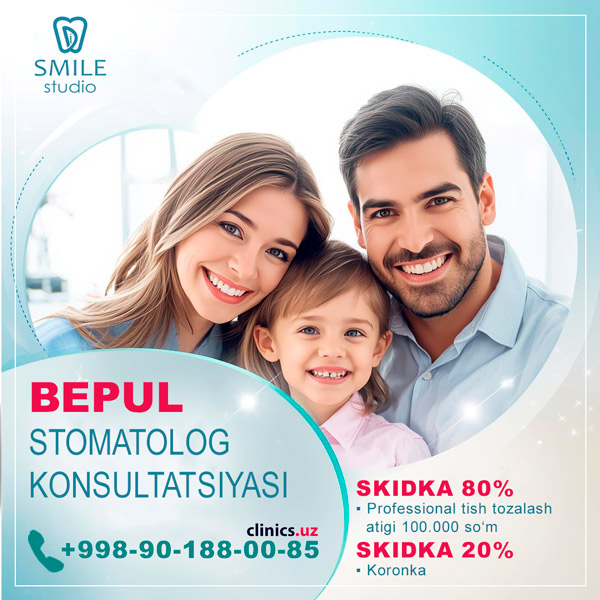 BEPUL stomatolog konsultatsiyasi + SUPER SKIDKA 80% professional tish tozalashga Di Smile klinikasida!