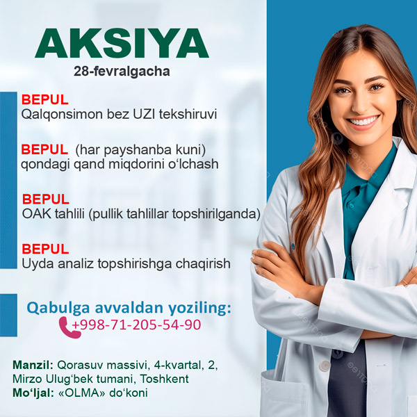 AKSIYA — BEPUL tibbiy tekshiruvlar fevral oyi davomida Qorasu Alfa Diagnostic klinikasida!